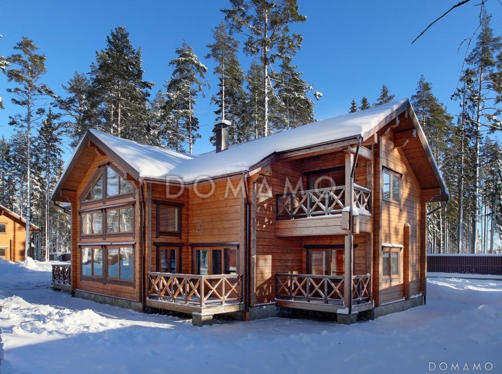 Главная Проекты домов Проект двухэтажного дома из клееного бруса с тремя небольшими террасами на первом этаже