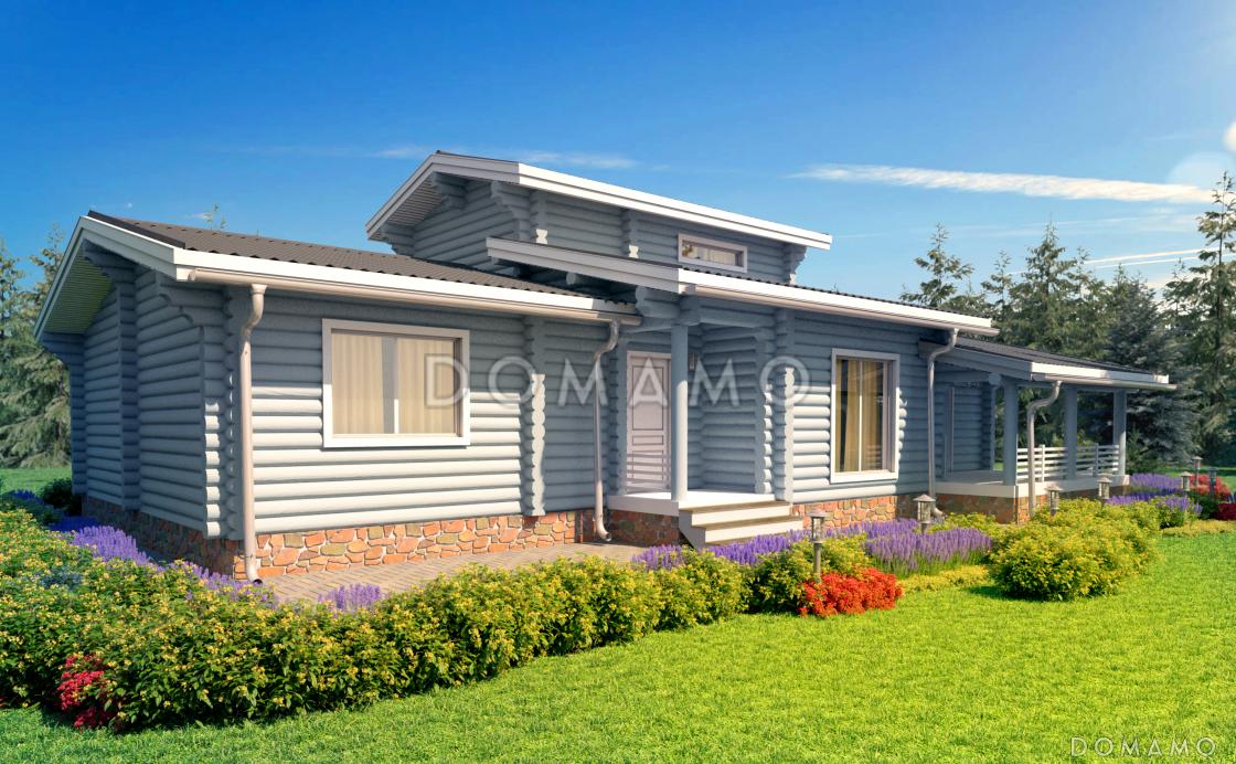Современный дом из оцилиндрованного бревна для круглогодичного проживания. Возможно изменение планировок.