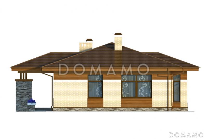 Компактный одноэтажный дом общим размером 10×13 м для круглогодичного проживания семьи из 3-х и более человек. Главные архитектурные особенности — мотивы альпийского шале и большой эркер в гостиной с панорамным окном — отличный обзор и источник естественного света и тепла. Следует отметить и размещенные в разных углах здания спальни, что обеспечивает достаточную приватность при проживании разных поколений или приеме гостей.