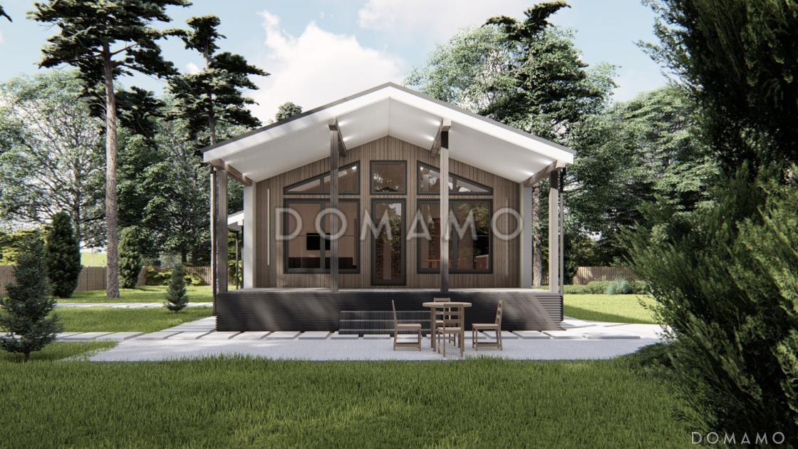 Проект дома Хюгге – это воплощение скандинавской классики. Он уютный, комфортный и лаконичный. Планировочное решение включает две спальни, санузел, гардеробную и просторную кухню-гостиную, в которой вам будет приятно проводить время с близкими. А для уютных семейных вечеров на свежем воздухе в проекте есть большая терраса. Этот дом станет прекрасным выбором для ценителей комфорта и релакса.