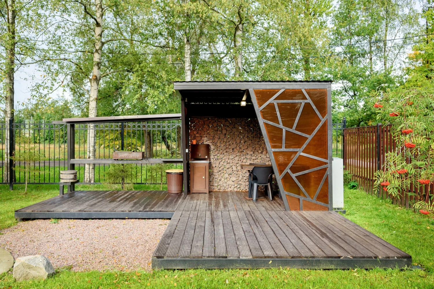 При строительстве гриль-домика потребуется позаботиться о наличии освещения, вытяжки и т. д. Также важно использовать отделку из огнеупорных материалов, чтобы возведенная конструкция была не только практичной, но и безопасной для использования.