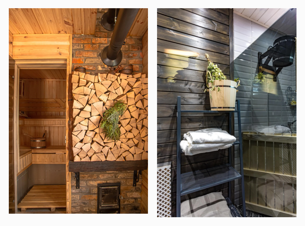 Древесину. Это может быть вагонка или обрезная доска. В отличие от элементов для парной, древесину можно покрыть лаком. В таком случае с нее можно будет легко удалять загрязнения.