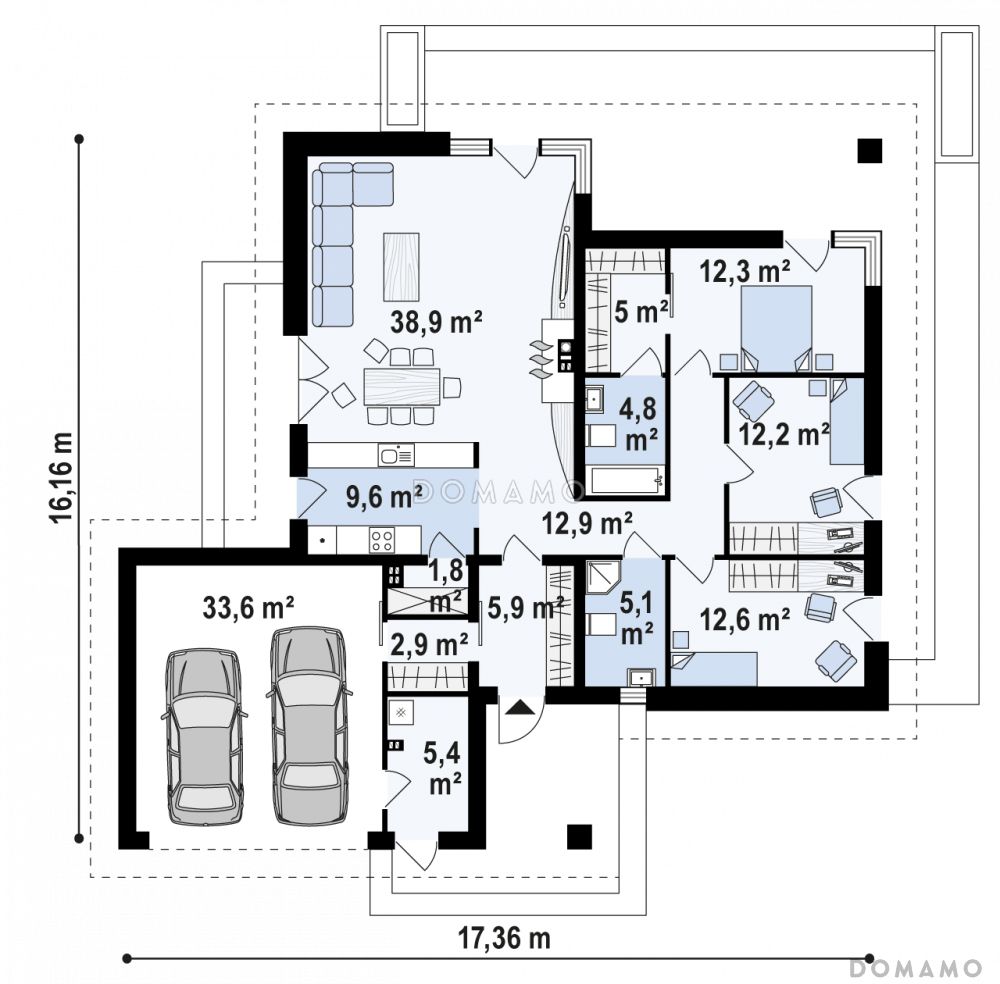 В качестве примера проекта дома из газобетона можно привести одноэтажное строение площадью 120 кв. м. с гаражом на две машины. Оно включает в себя 3 спальни, 2 санузла, кухню-гостиную и бойлерную. При проектировании загородного дома из газобетона были учтены все особенности материала, предусмотрена система вентиляции и отопления, уделено внимание энергоэффективности и комфорту.