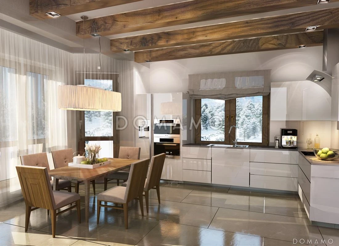 В эркере может находиться и рабочая зона. Приготовление пищи у панорамного окна с великолепным видом на природу будет вдохновлять на создание вкусных блюд. Эркер увеличивает кухонное пространство. Под подоконником можно расположить зону хранения кухонной утвари.