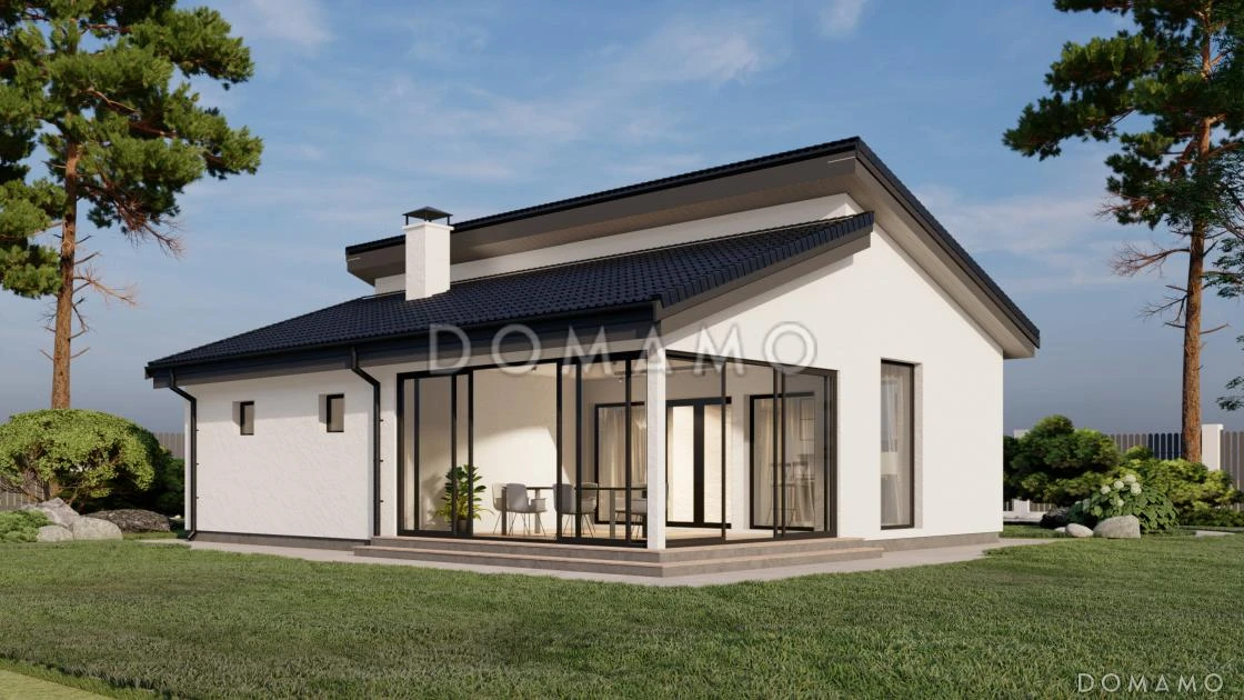 Облегчённый конструктив необязательно делать скучным. В этом случае и без ущерба для собственного кошелька можно выбрать разработку с панорамными окнами, видовой террасой на плоской крыше, оригинальной застеклённой пристройкой. Нестандартные размеры окон расширяют возможности в оформлении интерьера, а также сокращают затраты на искусственное освещение, то есть остекление можно использовать как инструмент экономии.