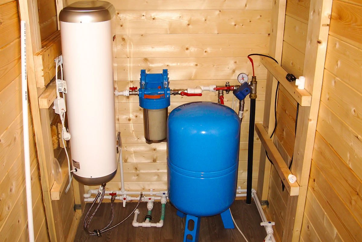 В частном доме система водоснабжения, организованная из колодца. комплектуется устройством выравнивания давления. Гидроаккумулятор (ГА) состоит из напорного бака с мембраной. Аппарат служит для гашения гидроударов, возникающих при пуске насосного оборудования.