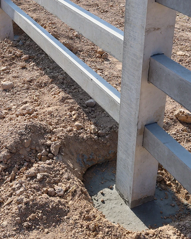 В полученные ранее скважины монтируют столбики, засыпают щебень с цементом и заливаю бетонным раствором. На полное затвердение уходит не менее 28 дней.