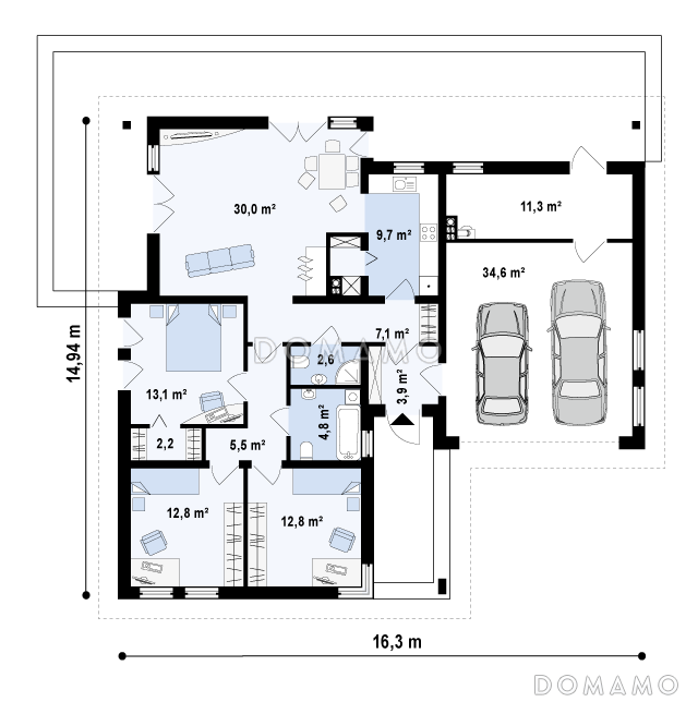 Наглядный пример: для семьи из трех человек (родители и ребенок) оптимальным будет дом площадью около 100м². Из них: