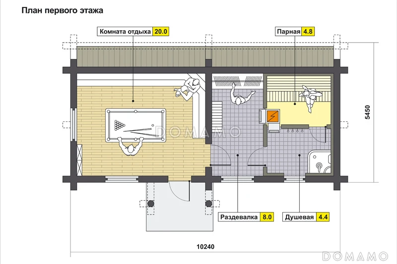 Таким образом, размеры бани и количество помещений зависит от того, сколько человек будут посещать парную, как часто будет использоваться помещение и какой уровень комфорта хочет получить владелец. Обычно в сооружении 5 × 4 м можно разместить практически любые «хотелки».