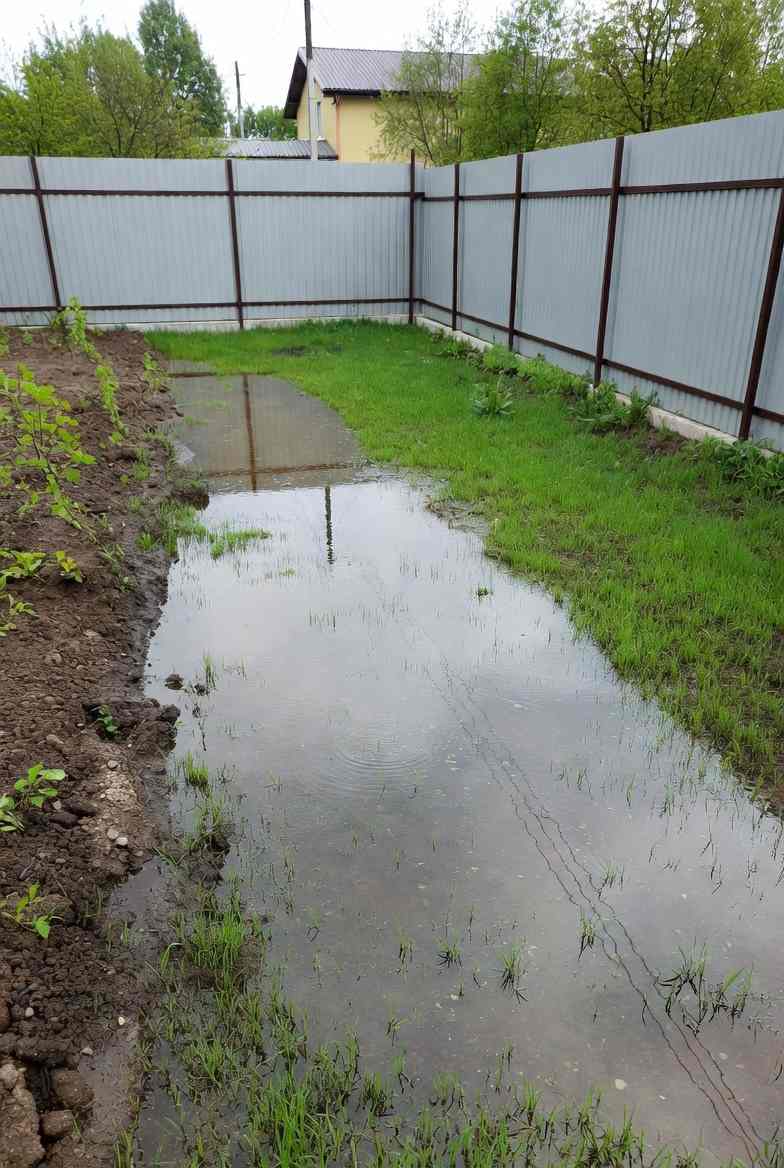 Был объект прошлой весной. Позвонил мне хозяин злой уже. Людям сделали дренаж по периметру, колодцев наставили, все красива вода как стояла посередине двора, так и стоит! Приехал , а лужица мелкая лежит вдоль забора в низинке, трава в ней плавает, глина размокла, всё как в болоте.