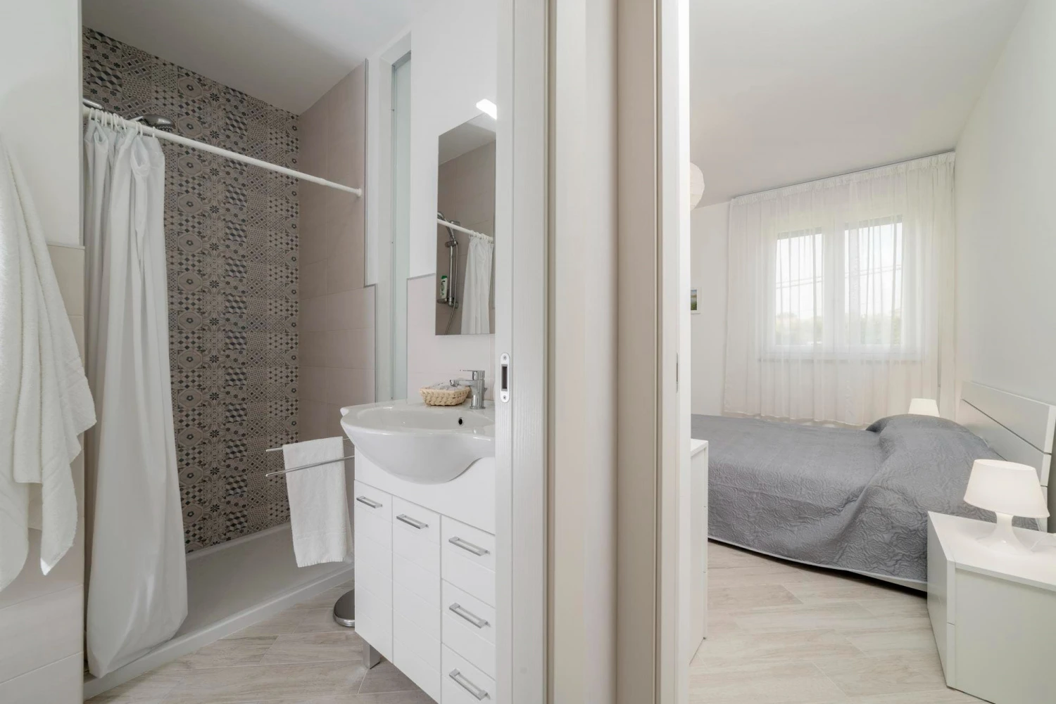 Мастер-спальня с ванной станет удобной для людей с разным рабочим графиком или режимом сна и бодрствования. Не мешая друг другу, все члены большой семьи смогут в удобное время собираться на работу, или готовиться ко сну.