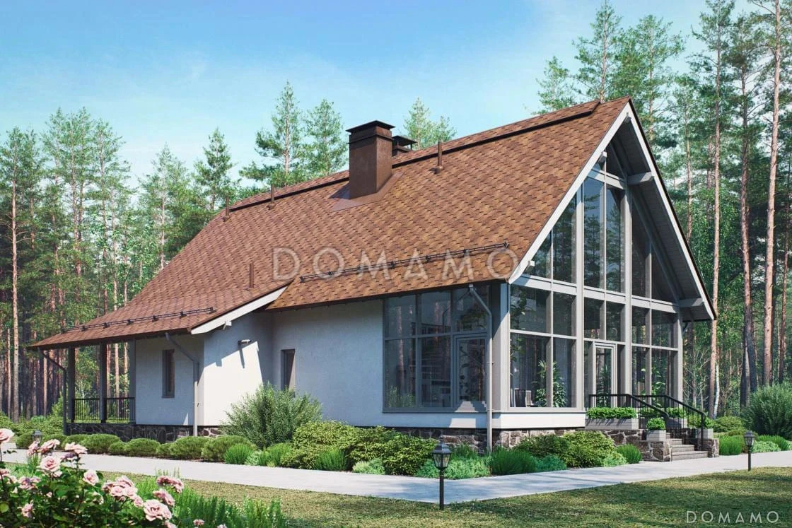 Эркерные. Эркер — это архитектурный оригинальный элемент, служащий изюминкой дома. Панорамное остекление становится акцентом фасада. Такая конструкция увеличивает доступ солнечного света в комнаты.