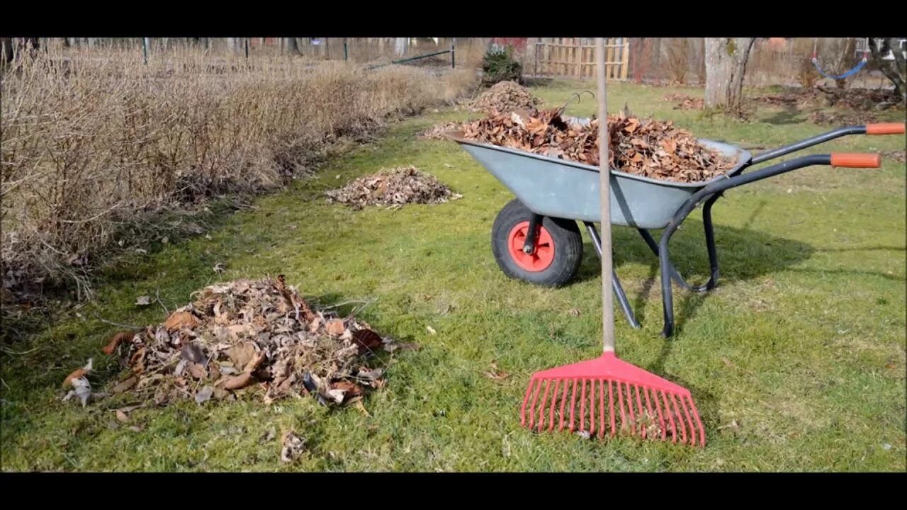 Удаление мусора — вычёсывание граблями прошлогодней листвы и войлока, которые мешают росту травы.
