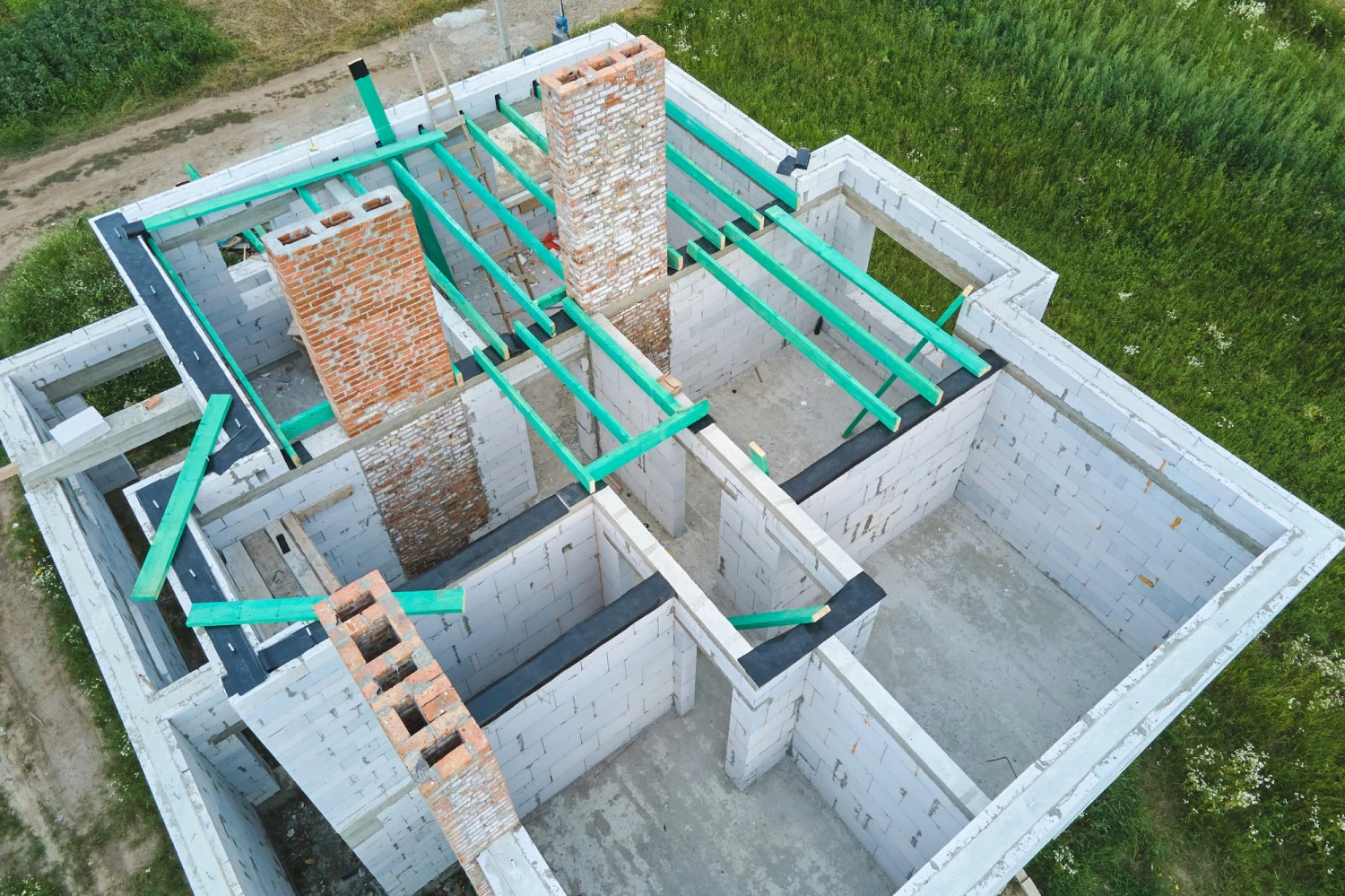 Другой вариант безбалочных конструкций в частном доме — это монолитное межэтажное перекрытие. Такое решение представляет цельную плиту, которая опирается на стены по периметру объекта. Монолитная основа считается прочной и надежной, она подходит для пролетов нестандартной конфигурации и простая в монтаже. Однако вес монолитной плиты достаточно большой, поэтому ее чаще используют в кирпичных зданиях.